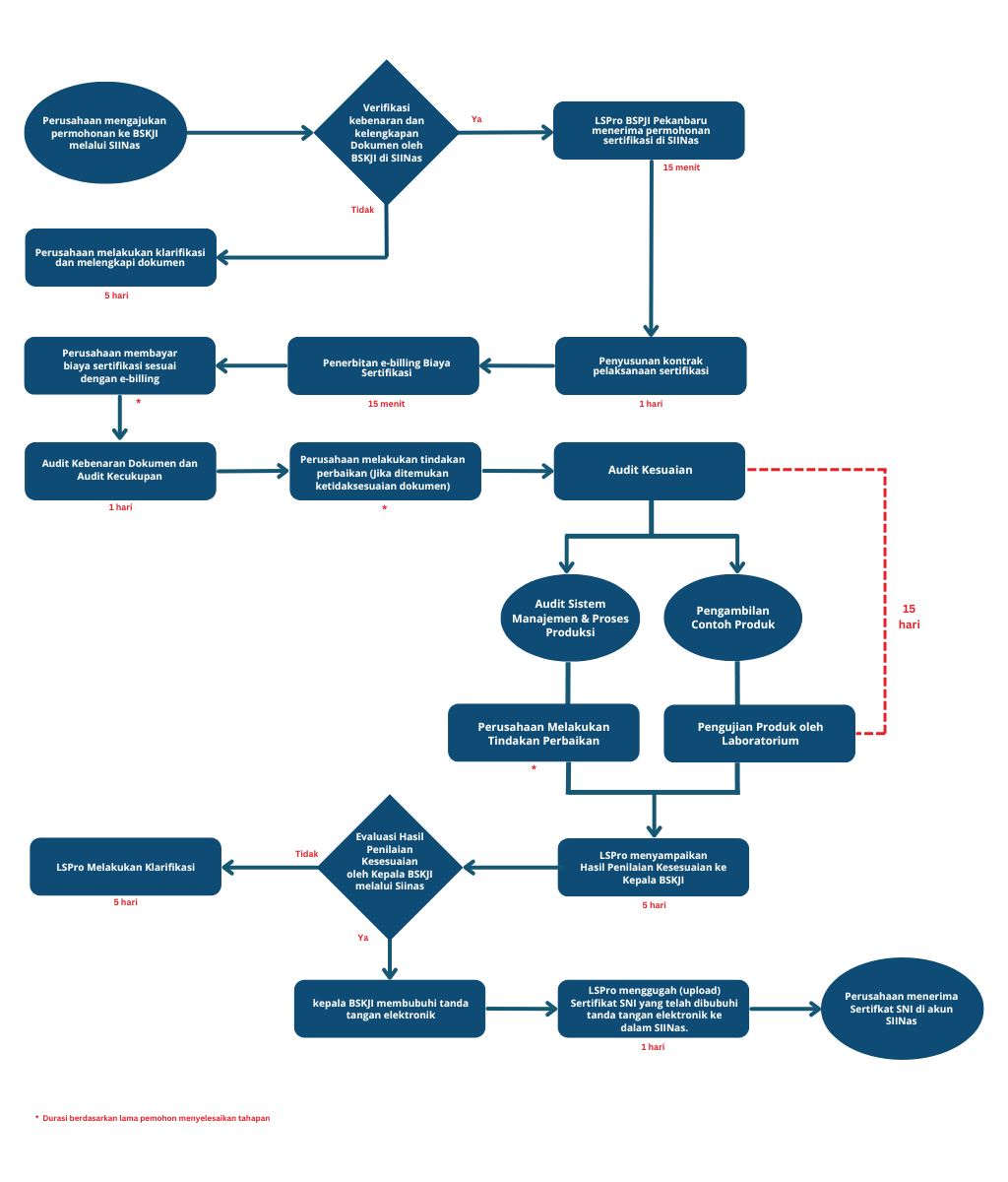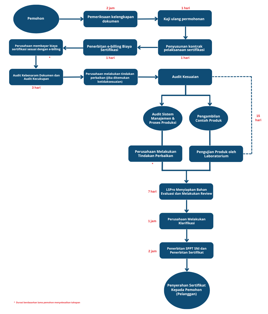 Proses sertifikasi SNI Wajib diperlukan untuk produk yang diatur regulasi. Meliputi permohonan, audit, pengujian, dan evaluasi sebelum sertifikat diterbitkan. Sertifikat ini wajib dimiliki agar produk dapat diedarkan dimana pengajuan permohonan melaluis SIINAS dengan alur sebagai berikut :